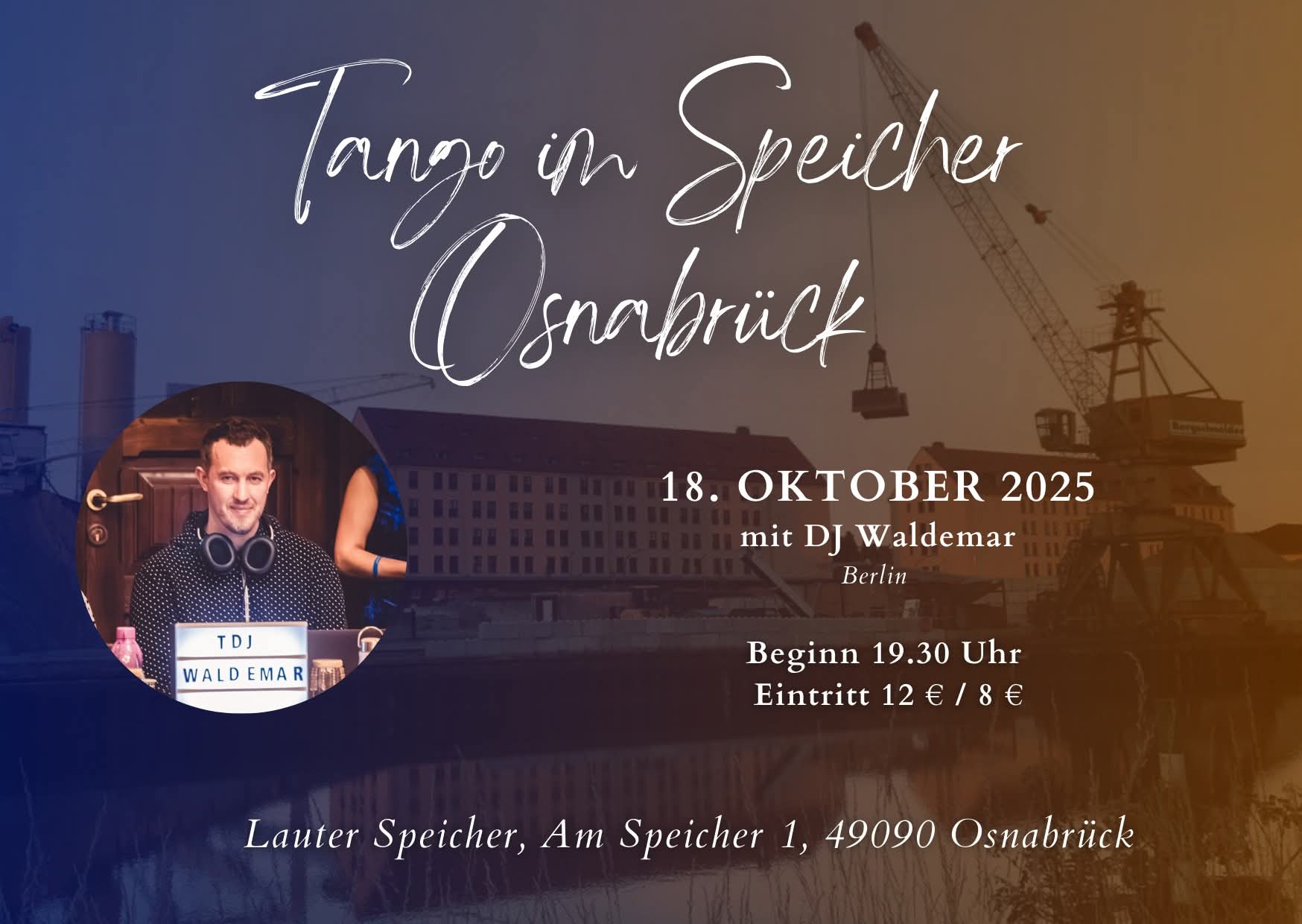 | 18.10.2025 (Samstag) | Tango im Speicher (LAUTER Speicher Am Speicher 1 49090 Osnabrück) |